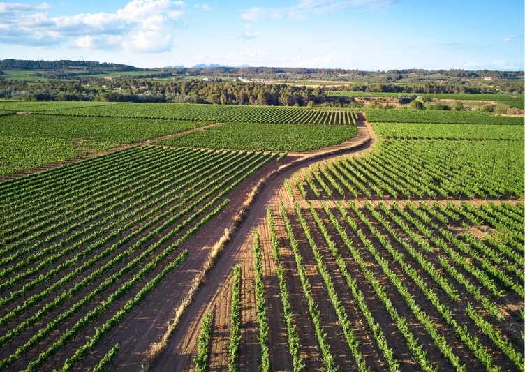 The vineyards are located in Zone 5 in northeastern Spain, a few miles south of Barcelona in the Alt (High) Penedés subregion of the Penedés DO. Overlooking the Mediterranean Sea at 176 meters (577 ft.) elevation, the vineyards and winery are located in the town of Vilafranca del Penedès. The ancient Greeks introduced vines to this area prior to the 4th Century BC. The topsoil is limestone and sand; the latter provides good drainage into the deeper water-retaining layers of clay subsoil and nourishes the vine when necessary. The root systems of the vines are able to penetrate up to 10 meters (about 30 feet) through the deep soil to search for water, particularly in times of drought. The soils are poor in organic matter, resulting in lower yields per vine and greater skin-to-juice ratio per berry, which produces more intense and concentrated grape flavors. The area’s climate has an average temperature from April-October of 66.6ºF, which is higher than the standard in Zone 5 (63ºF), and has a yearly rainfall of 24 inches. The higher temperatures bring higher levels of sugar while the elevation and rainfall give greater acid levels. The ripeness and acidity balance each other and improve the fresh aromas of the wines. The temperatures in Penedés are higher than those in Priorat and Montsant but lower than those in the Empordá and Terra Alta regions.