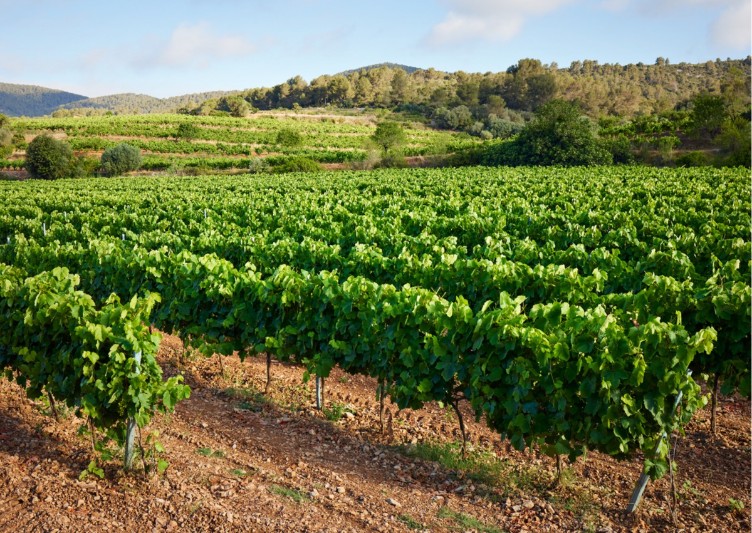 The vineyards are located in Zone 5 in northeastern Spain, a few miles south of Barcelona in the Alt (High) Penedés subregion of the Penedés DO. Overlooking the Mediterranean Sea at 176 meters (577 ft.) elevation, the vineyards and winery are located in the town of Vilafranca del Penedès. The ancient Greeks introduced vines to this area prior to the 4th Century BC. The topsoil is limestone and sand; the latter provides good drainage into the deeper water-retaining layers of clay subsoil and nourishes the vine when necessary. The root systems of the vines are able to penetrate up to 10 meters (about 30 feet) through the deep soil to search for water, particularly in times of drought. The soils are poor in organic matter, resulting in lower yields per vine and greater skin-to-juice ratio per berry, which produces more intense and concentrated grape flavors. The area’s climate has an average temperature from April-October of 66.6ºF, which is higher than the standard in Zone 5 (63ºF), and has a yearly rainfall of 24 inches. The higher temperatures bring higher levels of sugar while the elevation and rainfall give greater acid levels. The ripeness and acidity balance each other and improve the fresh aromas of the wines. The temperatures in Penedés are higher than those in Priorat and Montsant but lower than those in the Empordá and Terra Alta regions.